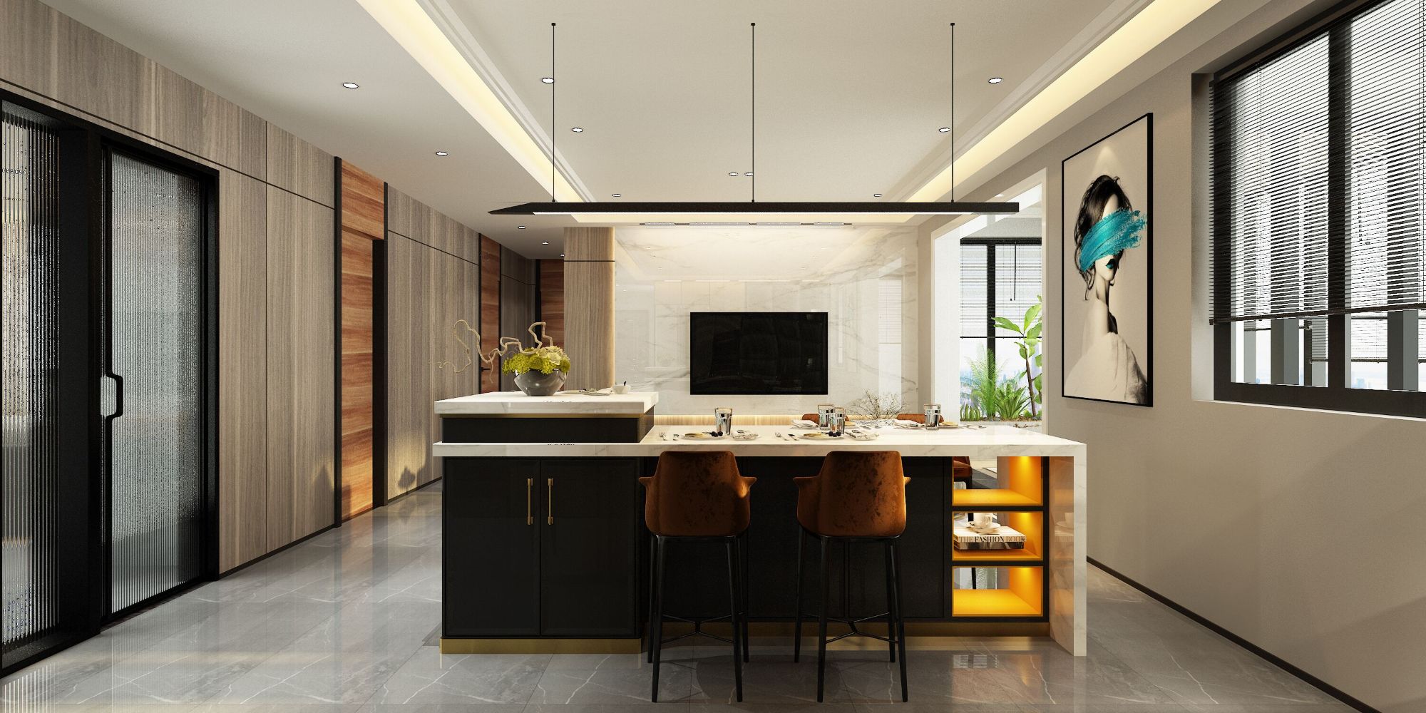 本案是以新中式風(fēng)格去進行設(shè)計的,新中式是從古流傳至今的裝飾元素結(jié)合現(xiàn)代裝修材質(zhì)所形成的一種裝修風(fēng)格,...
