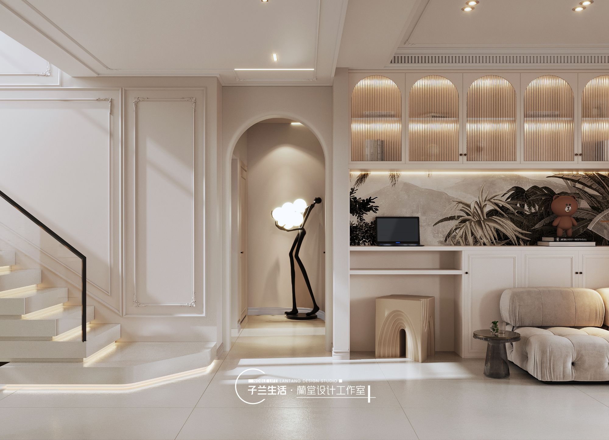 這是一個(gè)幸福的五口之家,原始的配套樓梯不合理,對于身高和顏值比較高的一家來說,在反復(fù)推敲之后,實(shí)現(xiàn)了美學(xué)和功能的完美結(jié)合。