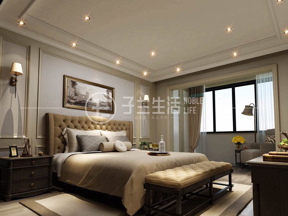 臥室造型與色系的搭配讓整個空間給人以典雅的格調,整個房間以簡單的造型配以線條作為點綴,既突出整體的風格,又點綴了整體的裝修風格,整個房間配色給人以溫馨、淡雅為主,讓主人具有一個更加放松的居家環(huán)境。