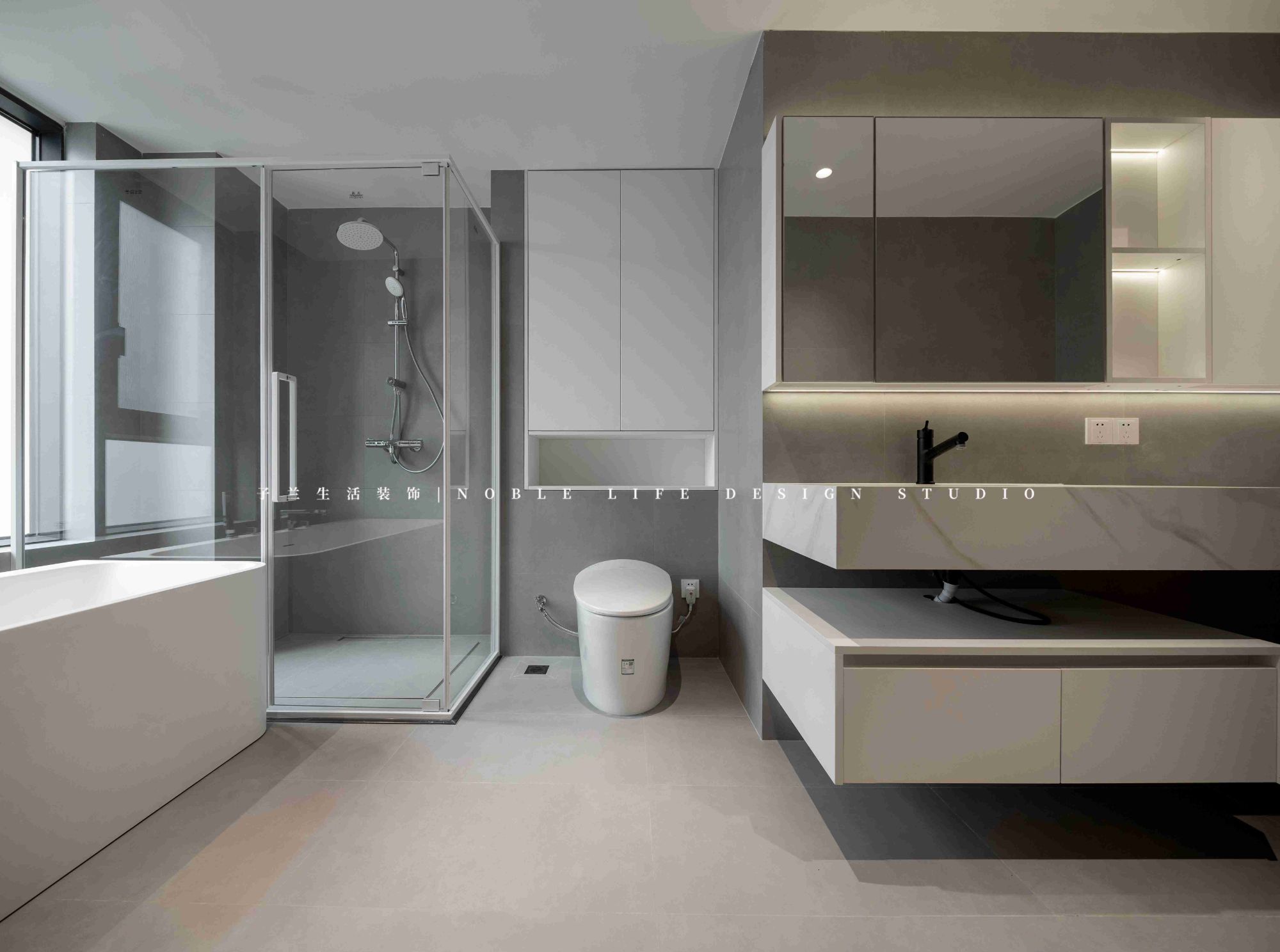 10㎡的主衛(wèi),館長先生不止考慮到淋浴、馬桶、洗手臺,還有小藝小姐喜歡的浴缸和梳妝臺,愛她,就為她考慮到方方面面。