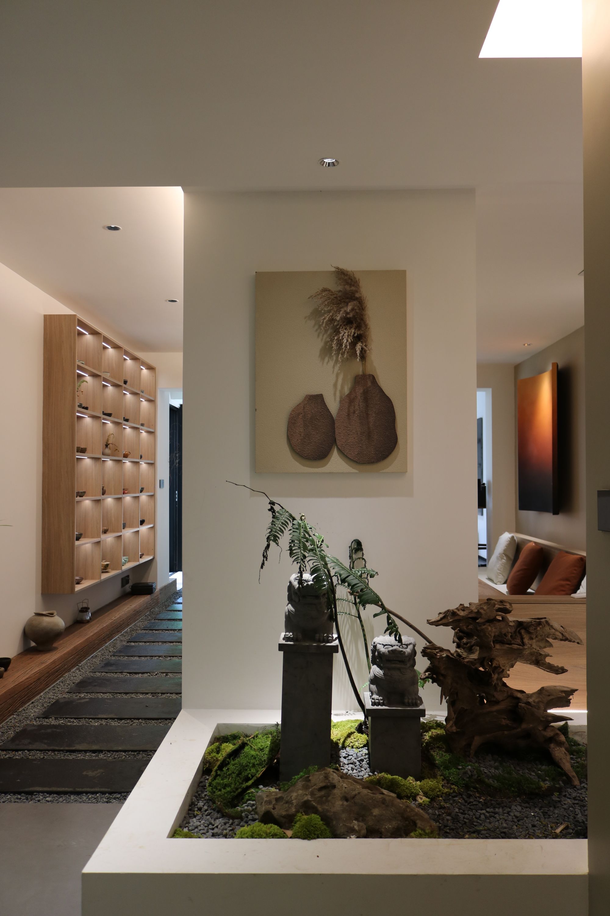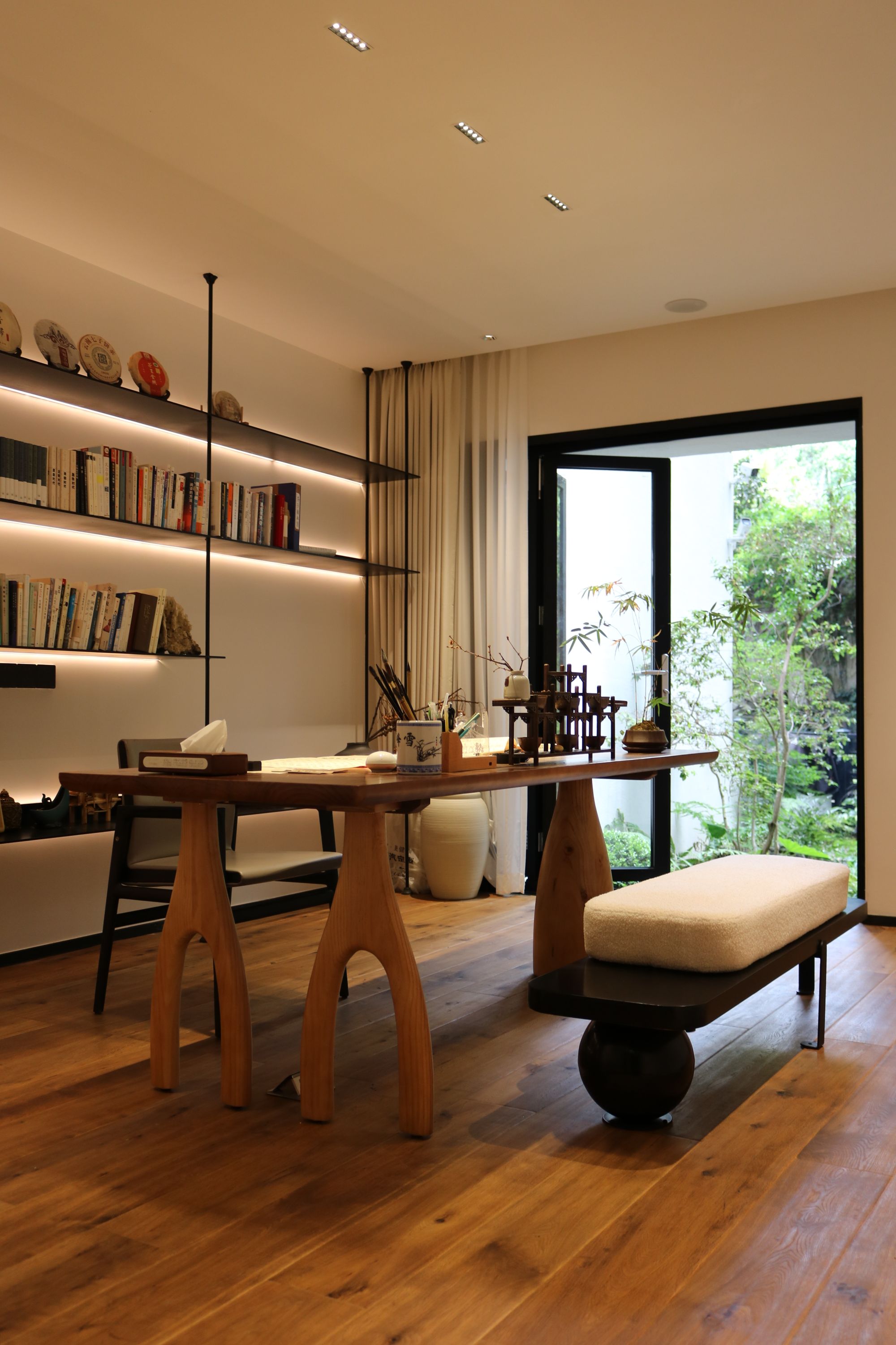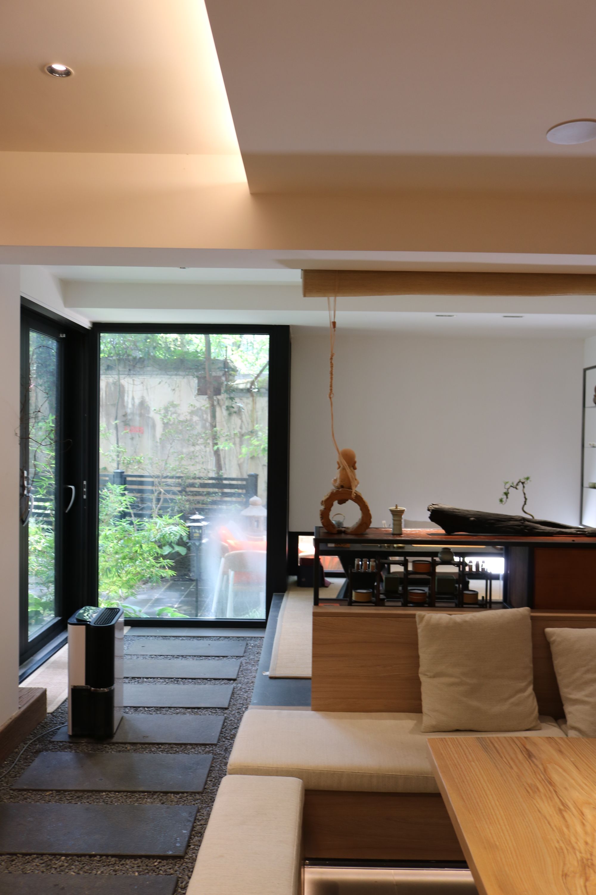 庭院的石板延接進(jìn)室內(nèi),緩入門廳,則是開放圍合式的茶客廳。當(dāng)問到為什么會把家裝成這種風(fēng)格時,鄧姐欣然的談道: “我和先生的條件是可以選擇住大平層、住別墅的,但是我們的兒女也長大了,住在一起的時間越來越短,我和先生住那么大的空間是我們真正需要的嗎?” 也許是人及中年更加懂得取舍與留存之道,比起住得寬敞,身心帶來的松弛感與愜意是鄧姐和先生更加追求與關(guān)注的。 “所以我們把這間老房進(jìn)行了改造,我們希望這是一個不被定義的空間,在這個空間里可以做我們都熱愛的事情,不被打擾,享受居家?guī)淼乃沙谂c治愈感?!?/span>